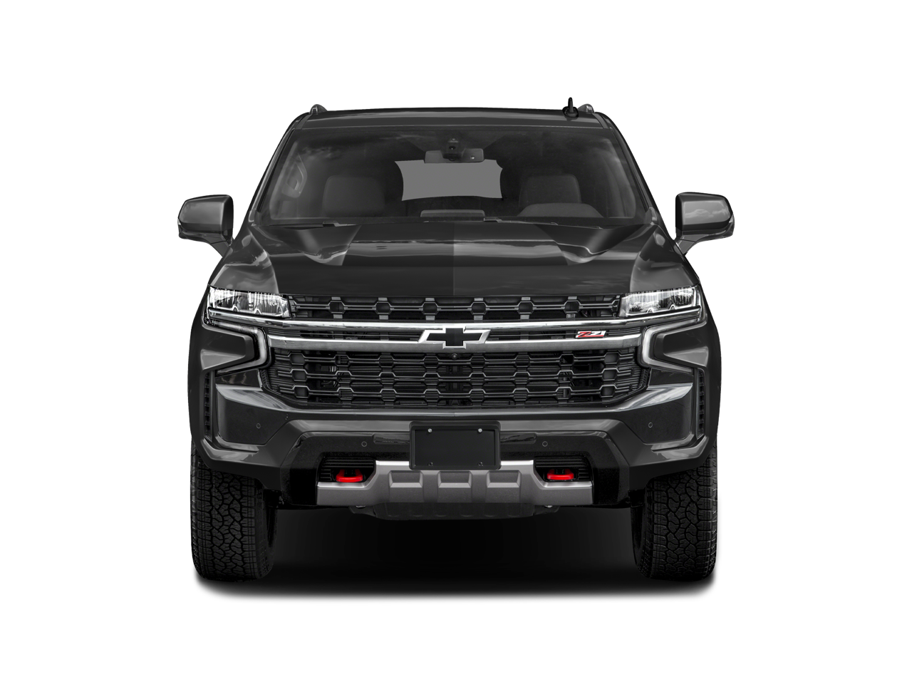 Check out the rest of the features of this vehicle. Advanced Trailering Package (Advanced Trailering System, Hitch Guidance w/Hitch View, and Integrated Trailer Brake Controller), Driver Alert Package (Front & Rear Park Assist, Lane Change Alert w/Side Blind Zone Alert, Lane Keep Assist w/Lane Departure Warning, and Rear Cross Traffic Alert), License Plate Front Mounting Package, Luxury Package (2nd Row Pwr Release 60/40 Split-Folding Bench Seat, 3rd Row 60/40 Power-Folding Split-Bench Seat, Automatic Heated Steering Wheel, HD Surround Vision, Heated 2nd Row Outboard Seats, Memory Settings, Outside Heated Power-Adjustable Mirrors, Power Tilt & Telescopic Steering Column, and Rear Pedestrian Alert), Max Trailering Package (Extra Capacity Cooling System), Preferred Equipment Group 2Z7 (1st & 2nd Row Color-Keyed Carpeted Floor Mats, 2 USB Data Ports, 2-Speed Active Electronic AutoTrac Transfer Case, Auto-Dimming Inside Rear-View Mirror, Black Tubular Assist Steps, Bright Front & Rear Door Sill Plates, Color-Keyed Carpeting Floor Covering, Driver & Front Outboard Passenger Airbags, Floor Console w/Storage Area, Front High-Approach Angle Fascia, Hands-Free Rear Power Programmable Liftgate, HD Radio, Hill Descent Control, Infotainment Display, Leather-Wrapped Steering Wheel, LED Daytime Running Lamps, Memory Settings for Driver, Red Horizontal-Mounted Recovery Hooks, Remote Start, SiriusXM Radio w/360L, and Universal Home Remote), Z71 Signature Package (DISC) (Dual-Pane Power Panoramic Sunroof), 4WD, Black Leather, 10-Way Power Driver & Passenger Seat Adjusters, 3.23 Rear Axle Ratio, 3rd row seats: split-bench, 4-Wheel Disc Brakes, 9 Speakers, ABS brakes, Air Conditioning, Alloy wheels, AM/FM radio: SiriusXM with 360L, Apple CarPlay/Android Auto, Auto High-beam Headlights, Auto-dimming Rear-View mirror, Automatic temperature control, Bose 9-Speaker Stereo Audio System Feature, Brake assist, Bumpers: body-color, Compass, Delay-off headlights, Driver door bin, Driver vanity mirror, Dual front impact airbags, Dual front side impact airbags, Electronic Stability Control, Emergency communication system: OnStar and Chevrolet connected services capable, Four wheel independent suspension, Front anti-roll bar, Front Bucket Seats, Front Center Armrest, Front dual zone A/C, Front High-Back Reclining Bucket Seats, Front reading lights, Fully automatic headlights, Garage door transmitter, Heated door mirrors, Heated Driver & Front Passenger Seats, Heated front seats, Illuminated entry, Leather Seat Trim, Leather steering wheel, Low tire pressure warning, Memory seat, Occupant sensing airbag, Outside temperature display, Overhead airbag, Overhead console, Panic alarm, Passenger door bin, Passenger vanity mirror, Power door mirrors, Power driver seat, Power Liftgate, Power passenger seat, Power Release 2nd Row Bucket Seats, Power steering, Power windows, Premium audio system: Chevrolet Infotainment 3, Premium Smooth Ride Suspension, Radio: Chevrolet Infotainment 3 Plus System, Rain sensing wipers, Rear air conditioning, Rear anti-roll bar, Rear reading lights, Rear seat center armrest, Rear window defroster, Rear window wiper, Remote keyless entry, Roof rack: rails only, Security system, Speed control, Speed-sensing steering, Split folding rear seat, Spoiler, Steering wheel mounted audio controls, Tachometer, Telescoping steering wheel, Tilt steering wheel, Traction control, Trip computer, Variably intermittent wipers, Voltmeter, and Wheels: 20 x 9 Machined Aluminum.