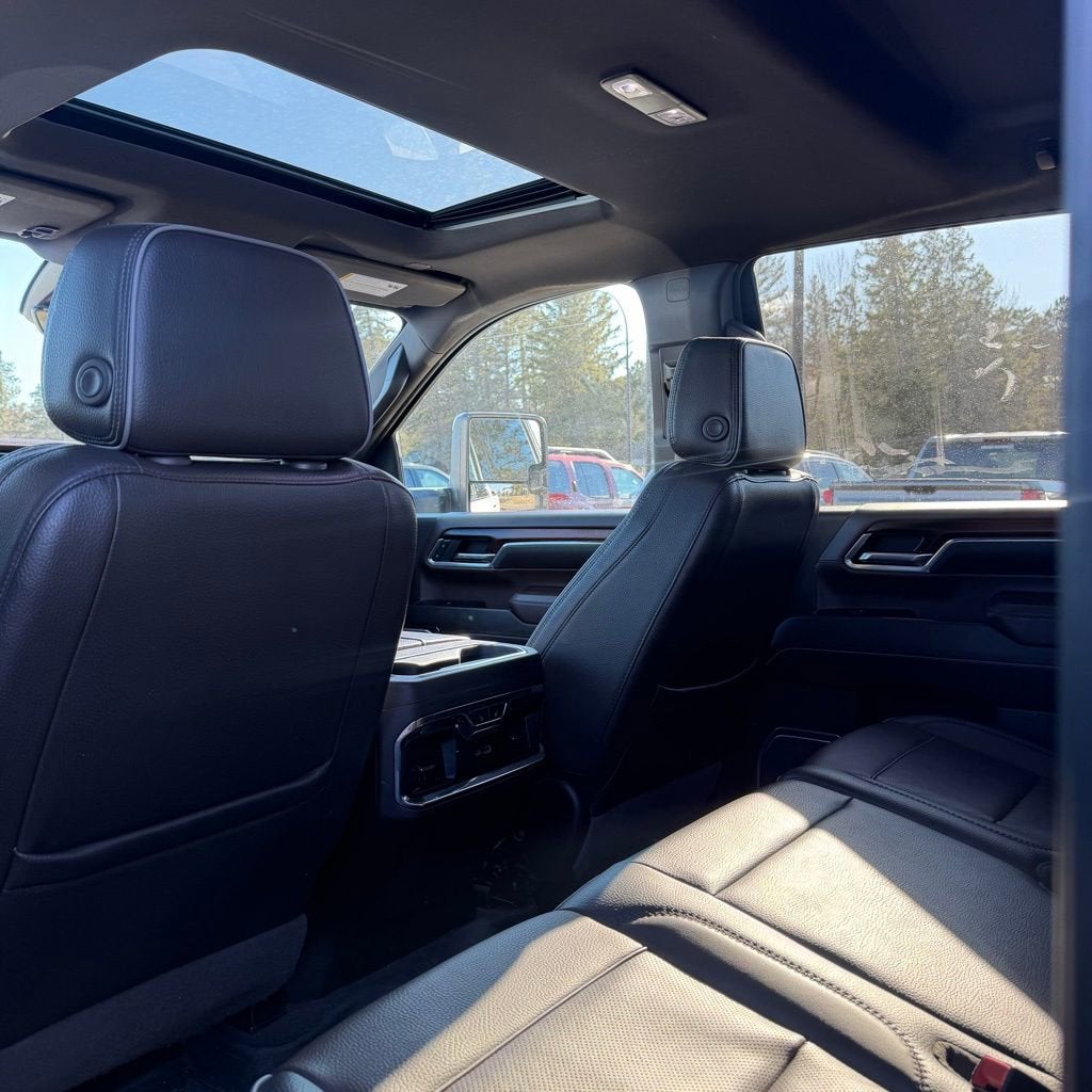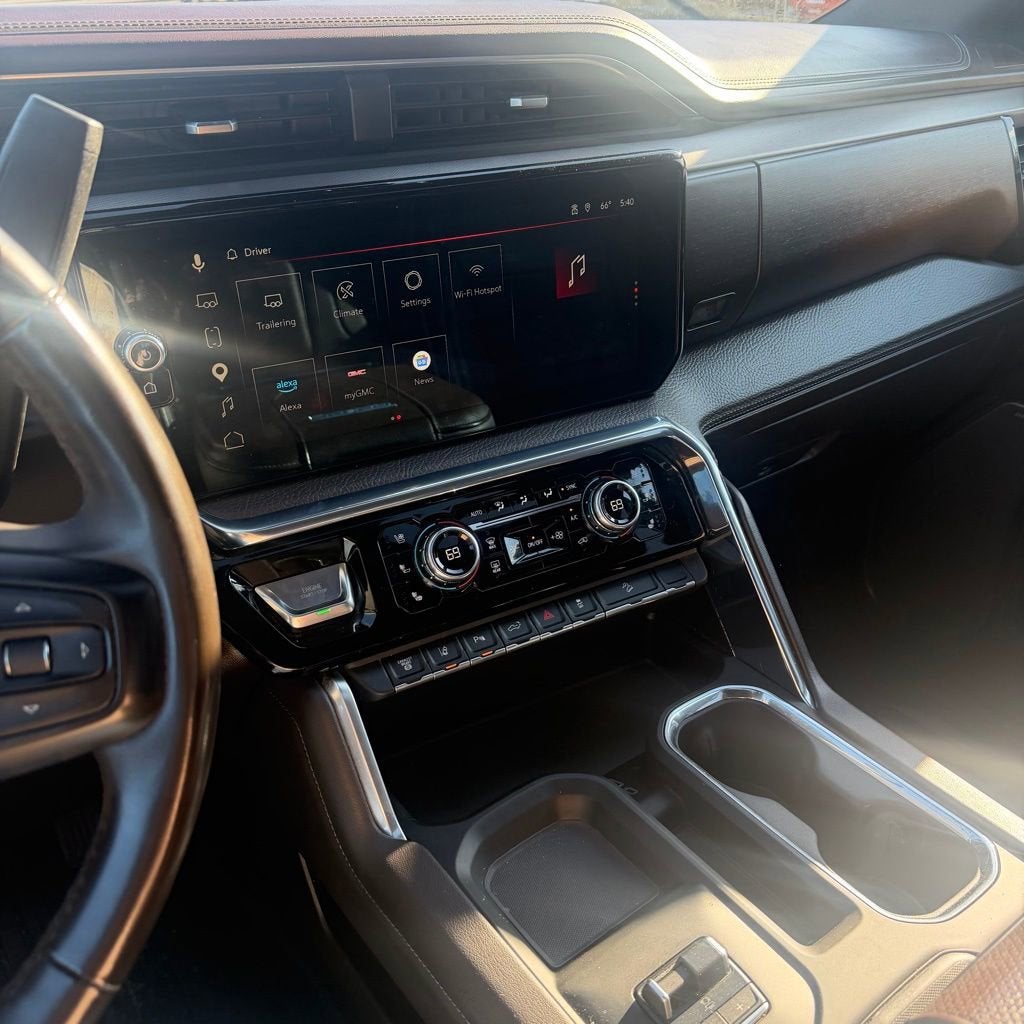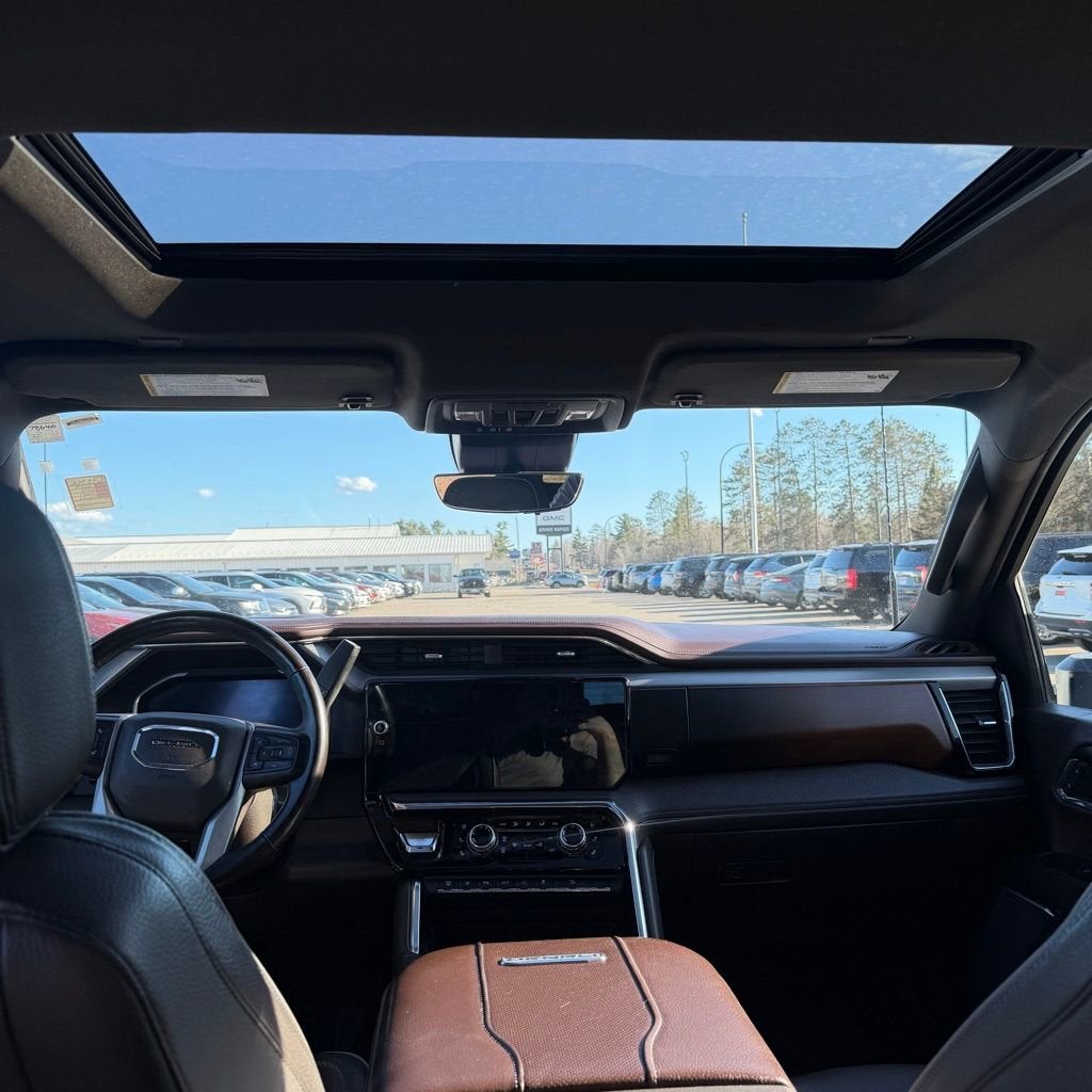 Check out the rest of the features of this vehicle. Denali Reserve Package (Power Sunroof), Gooseneck/5th Wheel Prep Package, Preferred Equipment Group 5SA (120-Volt Bed Mounted Power Outlet, 120-Volt Instrument Panel Power Outlet, 2 Charge-Only Rear USB Ports, 2 Charge/Data USB Ports Inside Center Console, 2 USB Ports, 2-Speed Active Transfer Case, Bed View Camera w/2 Trailer Camera Provisions, Bose Premium 7-Speaker Sound System, Deep-Tinted Glass, Electric Rear-Window Defogger, Floor-Mounted Center Console, Front Rain-Sensing Wipers, HD Surround Vision, Heated 2nd Row Outboard Seats, Heated Driver & Front Outboard Passenger Seats, Integrated Trailer Brake Controller, Keyless Open & Start, LED Cargo Area Lighting, LED Smoked Amber Roof Marker Lamps, Manual Tilt-Wheel/Telescoping Steering Column, Polished Exhaust Tip, Power Front Windows w/Passenger Express Up/Down, Power Sliding Rear Window w/Defogger, Push Button Start, Rear Cross Traffic Alert, Rear Wheelhouse Liners, Remote Vehicle Starter System, Safety Alert Seat, Signature Chrome Denali Grille, SiriusXM w/360L, Spray-On Pickup Bedliner w/Denali Logo, Steering Wheel Audio Controls, Trailer Camera Provisions, Trailer Side Blind Zone Alert, Ultrasonic Front & Rear Park Assist, Unauthorized Entry Theft-Deterrent System, Universal Home Remote, Ventilated Driver & Front Passenger Seats, Wireless Charging, and Wireless Phone Projection), Technology Package (Adaptive Cruise Control, Auto-Dimming Inside Rearview Mirror w/Camera, and Multicolor 15 Diagonal Head-Up Display), X31 Off-Road Package (Hill Descent Control), 10-Speed Automatic, 4WD, Atmosphere/Brownstone Leather, 12-Way Power Driver Seat Adjuster w/Lumbar, 12-Way Power Passenger Seat Adjuster w/Lumbar, 220 Amp Alternator, 4-Wheel Disc Brakes, 7 Speakers, ABS brakes, Air Conditioning, Alloy wheels, AM/FM radio: SiriusXM with 360L, Apple CarPlay/Android Auto, Auto High-beam Headlights, Auto-dimming door mirrors, Auto-dimming Rear-View mirror, Automatic Emergency Braking, Automatic temperature control, Body Color Wheel Arch Moldings (LPO), Brake assist, Buckle to Drive, Bumpers: body-color, Compass, Delay-off headlights, Driver door bin, Driver Memory, Driver vanity mirror, Dual front impact airbags, Dual front side impact airbags, Electronic Stability Control, Emergency communication system: OnStar and GMC connected services capable, Engine Block Heater, Exhaust Brake, Following Distance Indicator, Forge Perforated Leather-Appointed Seat Trim, Forward Collision Alert, Front anti-roll bar, Front Bucket Seats, Front Center Armrest, Front dual zone A/C, Front fog lights, Front License Plate Kit, Front Pedestrian Braking, Front reading lights, Front wheel independent suspension, Fully automatic headlights, Garage door transmitter, Genuine wood dashboard insert, Genuine wood door panel insert, GMC Premium 13.4 Diagonal Information Display, Heated door mirrors, Heated front seats, Heated rear seats, Heated steering wheel, Heavy-Duty 80 Amp-Hr Battery, High Idle Switch, Hitch Guidance w/Hitch View, Illuminated entry, IntelliBeam Automatic High Beam On/Off, Lane Departure Warning System, Low tire pressure warning, Memory seat, Occupant sensing airbag, Off-Road Suspension, Outside temperature display, Overhead airbag, Overhead console, Panic alarm, Passenger door bin, Passenger vanity mirror, Pickup Bed, Power door mirrors, Power driver seat, Power passenger seat, Power steering, Power windows, Power-Retractable Assist Steps, Premium audio system: Premium GMC Infotainment System, Radio: AM/FM w/Premium GMC Infotainment System, Rain sensing wipers, Rear reading lights, Rear seat center armrest, Rear st